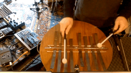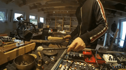 Aus Alltagsgegenständen zusammengeschraubte Klangobjekt, erweitert durch elektronische Verfremdung.