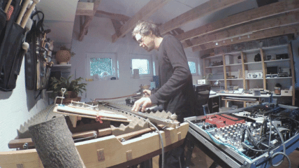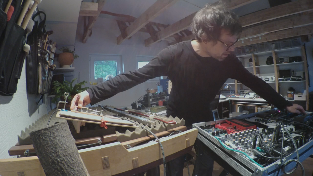 Aus Alltagsgegenständen zusammengeschraubte Klangobjekt, erweitert durch elektronische Verfremdung.
